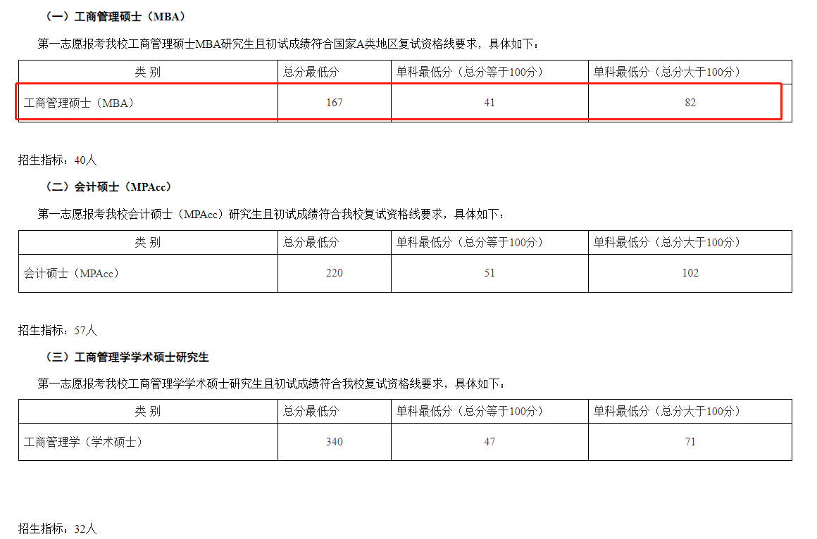 首都经济贸易大学2020年MBA复试分数线