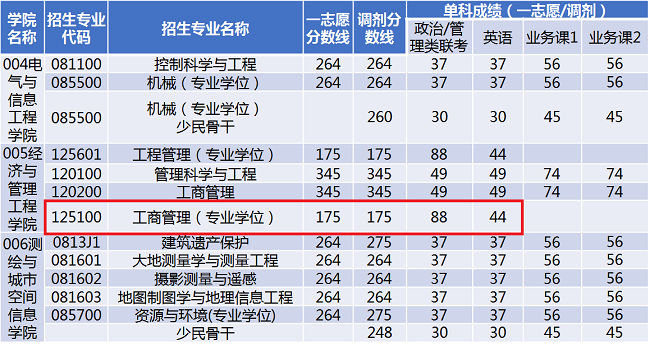 北京建筑大学2020年MBA复试分数线:175/44/88
