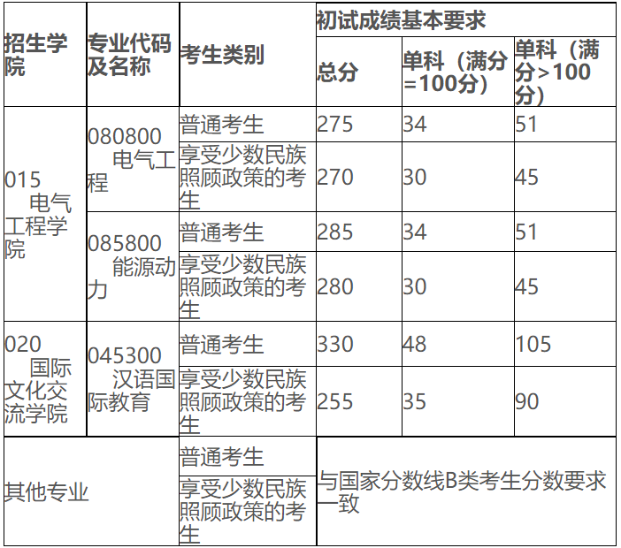 根据《2020年全国硕士研究生招生工作管理规定》(教学函〔2019〕6号)文件规定,依据“2020年全国硕士研究生招生考试考生进入复试的初试成绩基本要求”和我校设定的学科门类统考科目单科最低要求,结合招生单位生源和计划等情况,划定各学科专业复试分数线。现予公布。