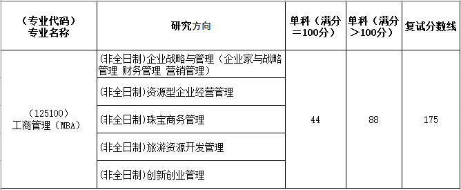 中国地质大学(武汉)2020年MBA硕士研究生复试分数线及相关说明