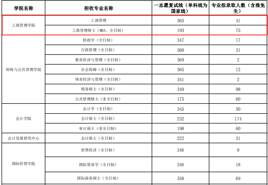 2021年辽宁大学商学院工商管理硕士(专业代码125100)拟计划招生210人。复试分数线执行教育部文件规定,即总分170分,外语42分,综合84分。一志愿考生采取等额复试,调剂考生一般采取差额复试(生源不足情况下除外)。
