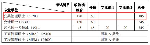 北京大学公共管理硕士(MPA)复试分数线:185 120 50