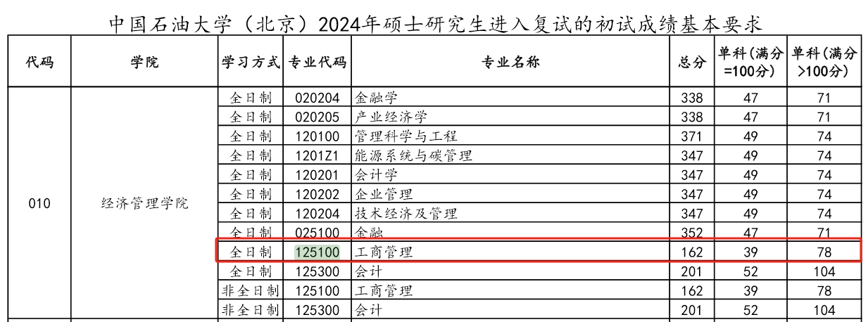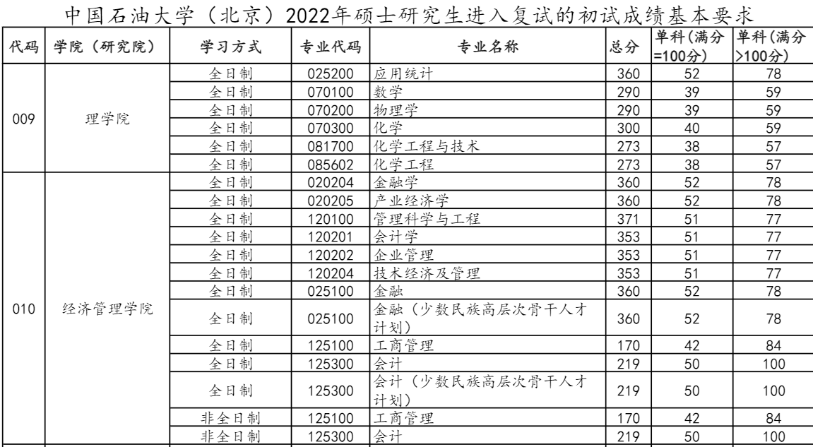 中国石油大学(华东)2022年MBA复试分数线
