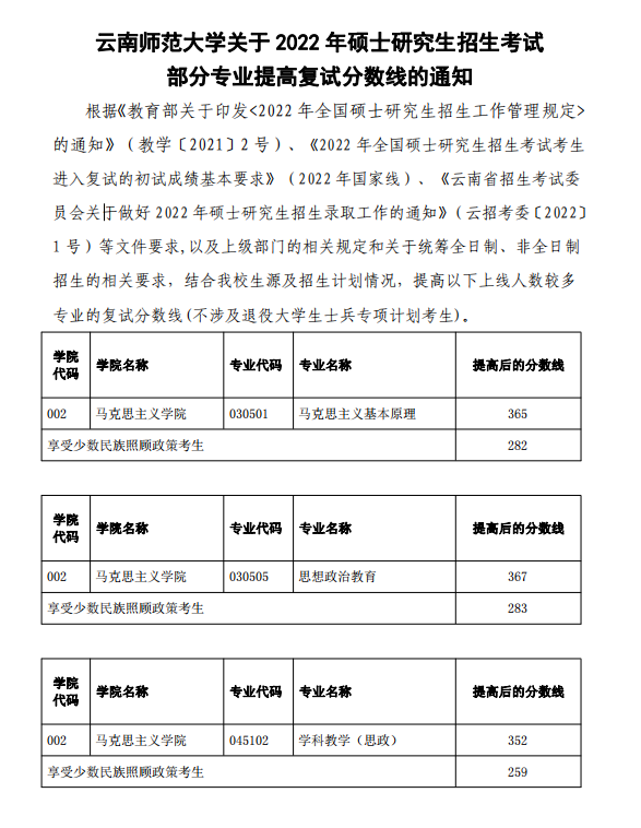云南师范大学2022年MBA复试分数线