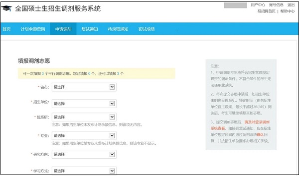 2、不符合调入专业学科门类要求、初试科目要求或招生单位调剂申请条件的考生,将无法填报相应志愿。