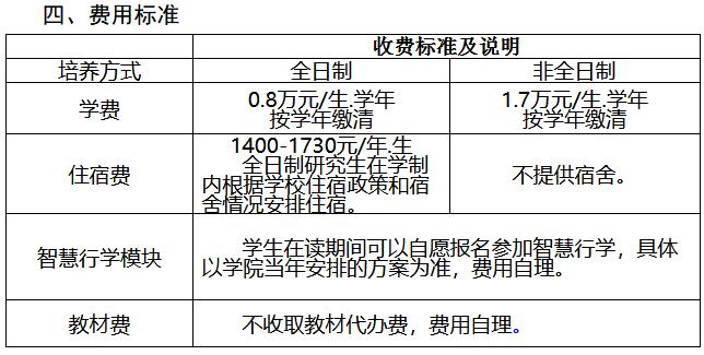培养费用:全日制50000元/人,按学年分两次缴纳;非全日制90000元/人,按学年分三次缴纳。