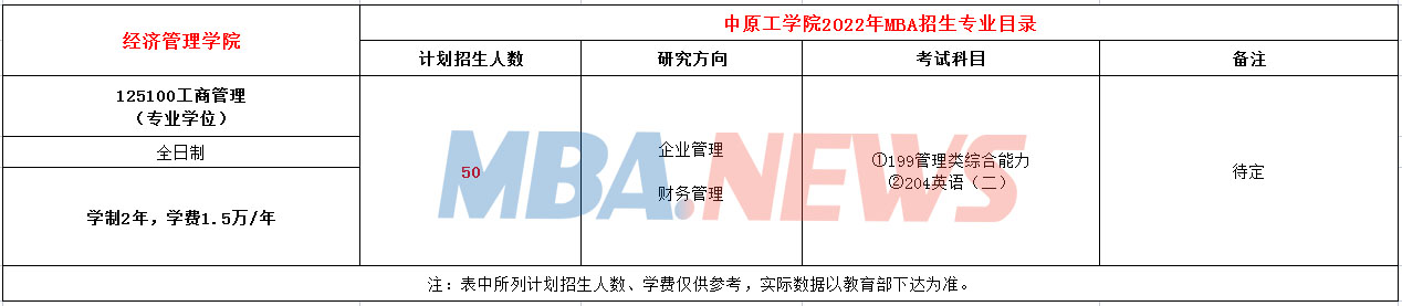 中原工学院发布2020年MBA招生简章,招收全日制MBA硕士30名,学制2年,学费1.5万元/年。