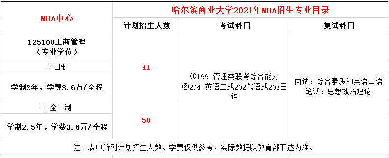 哈尔滨商业大学2020年MBA招生简章公布!学费3.6万元!
