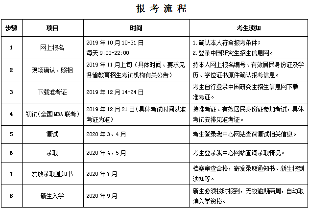 程序:登录“中国研究生招生信息网”(http://yz.chsi.com.cn),浏览报考须知,并按教育部、省级教育招生考试院、报考点以及报考招生单位的网上公告要求报名。学习方式为“非全日制”,报考类别为“定向就业”,考试方式为“管理类联考”,报考专业为“工商管理(专业学位)”,研究方向为“F1工商管理”。