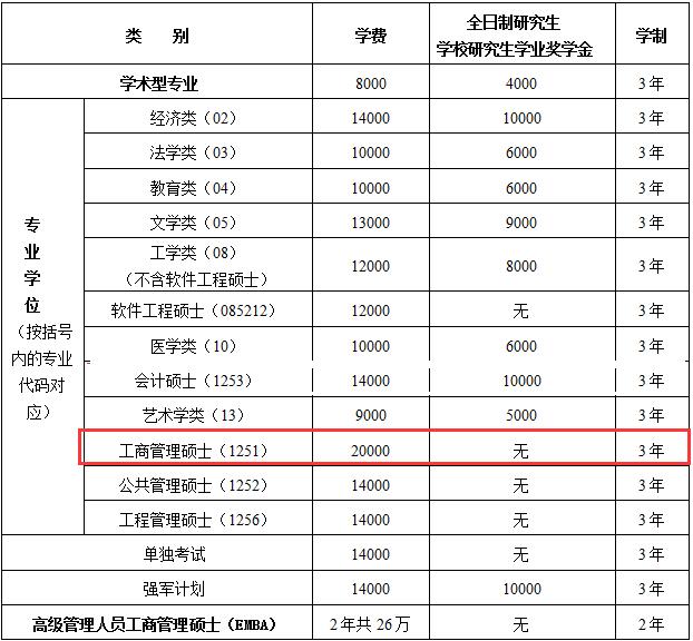高级管理人员工商管理硕士(EMBA)学制为2年,其他专业均为3年。