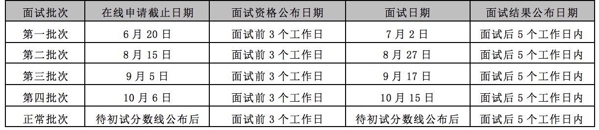 5.在线申请日期对应了指定面试批次及相关安排,书面材料的提交和审核将统一在面试环节进行。