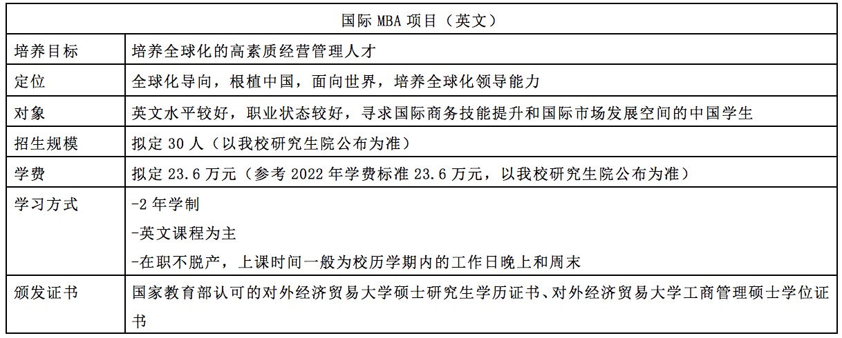 我校MBA项目依据国内、国际认证标准制定人才培养模式,致力于培养全球化的高素质经营管理人才,一贯秉承管理教育的国际化特色,注重跟踪国际上MBA教育的发展动向,不断调整和更新课程体系和教学方法;注重管理学科的系统化综合运用,外语与专业并重,大量使用英文原版教材和案例授课;注重理论与实践相结合,教授授课与"第二课堂"活动相结合。依托于最具价值商学院的平台,我校MBA项目以一流的教育品质得到了社会大众和媒体机构的高度关注,在各项评比排名中均名列前茅,成绩斐然,荣膺“中国最具价值MBA/EMBA”、“中国最佳MBA/EMBA”、“中国最具影响力MBA”、 “最具特色竞争力EMBA项目”等称号。