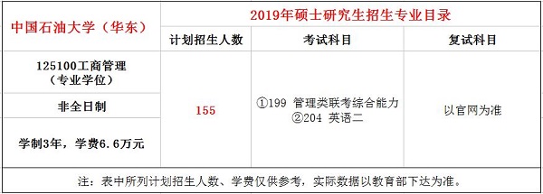 中国石油大学(华东)2019年MBA非全日制招收155人,学费66000元,学制3年。