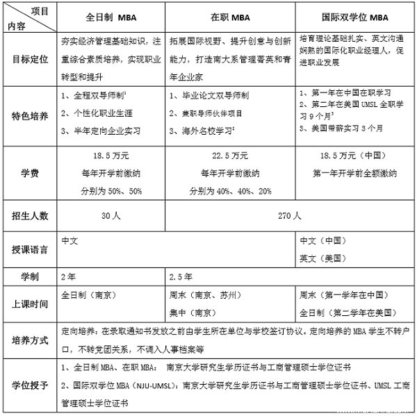 该项目为南京大学与美国密苏里(圣路易斯)大学合作创立的“南京大学—密苏里(圣路易斯)大学国际 MBA 项目”简称“国际双学位 MBA 或 NJU-UMSL ”,学校简介详见南京大学MBA教育中心网站。