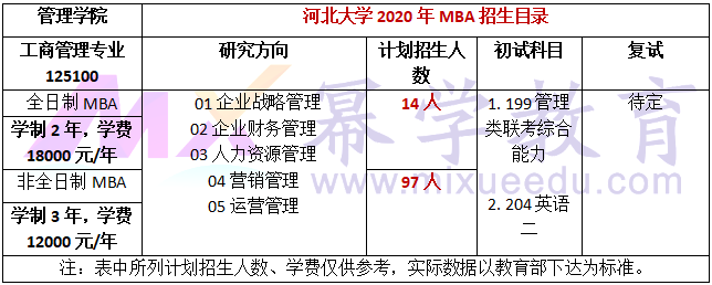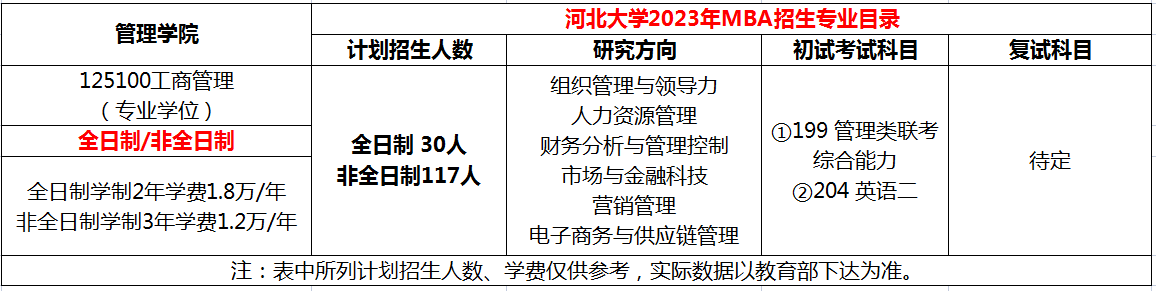 【MBA新闻网讯】河北大学2025年MBA全日制招收30人,学制2年,学费18000 年;非全日制招收128人,学制3年,学费18000 年。